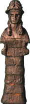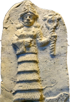 Dave Deal’s discovery relates directly to the depictions of Genesis characters in ancient art. In the early post-Flood world, the ancients revered Naamah (called Nammu in Sumer), the last woman mentioned in the line of Cain (Genesis 4:22), who came through the Flood as Ham’s wife, and who then instigated the abandonment of God and the return to the exaltation of the serpent’s “enlightenment.” The ancient artists deified Naamah/Nammu and identified her with the mountain upon which she landed in the ark. In these ancient images, she wears a mountain hat and her special dress is flounced and tiered representing sections of the escarpment on the mountain. Naamah’s image to the right holds the staff of the two-headed serpent symbolizing the serpent’s rule before the Flood, and now, because of her Cainite dedication, the serpent’s rule resumed in the post-Flood world. Please see INTRODUCTION for information on Naamah’s ultimate glorification as Athena in the Greek world.